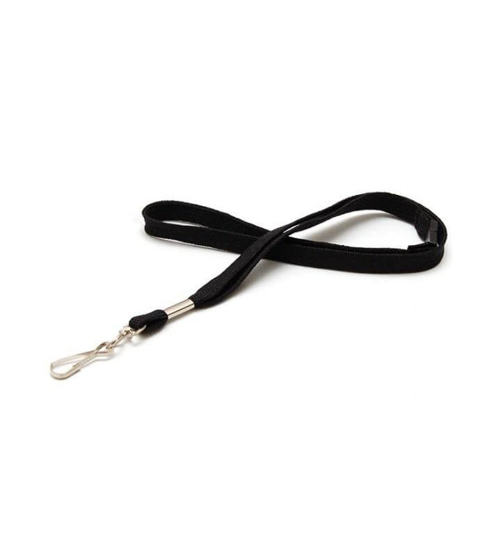 Cordón de poliéster personalizado con mosquetón metálico. Dispone de un cierre para darle más seguridad. Con esta cinta podrá llevar sus tarjetas y credenciales a buen recaudo con la seguridad que le otorga la garantía de un producto Evolis. Disponible en 4 colores (preguntar por disponibilidad, por defecto negras)
