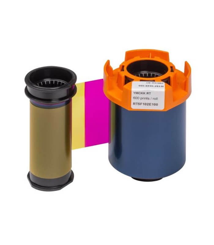 La cintade color YMCK-K RT es una cinta premium a todo color de 4 paneles y dos paneles adicionales de resina negra, que permiten una impresión impecable a doble cara. ¡Asegure impresiones vívidas y realistas con cada uso! 600 impresiones a todo color por rollo, cinta de color YMCKK (paneles de cinta amarilla, magenta, cian y negra y dos paneles negros)