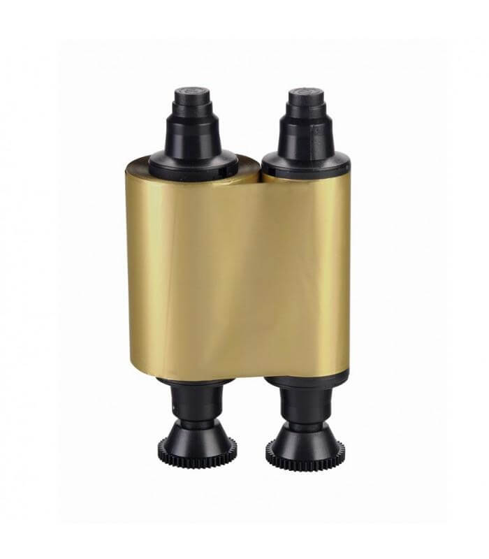 Cinta monocromo oro. Idónea para personalizar tarjetas pre-impresas, que no necesiten ser personalizadas con imágenes. Uso para impresoras Evolis Dualys, Evolis Quantum, Evolis Securion y Evolis Pebble.